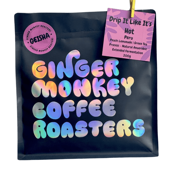The information about specialty coffee beans, Drip It Like It’s Hot – Peru – Geisha roasted by Ginger Monkey. These beans have flavour notes of Floral, Peach, Lemon. The beans are grown in Peru. The beans are of Gesha / Abyssinia varieties.