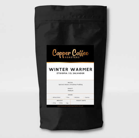The information about specialty coffee beans, Seasonal Winter Warmer | Speciality Coffee Blend roasted by Copper. These beans have flavour notes of Sweet, Raisin, Dried Fruit.