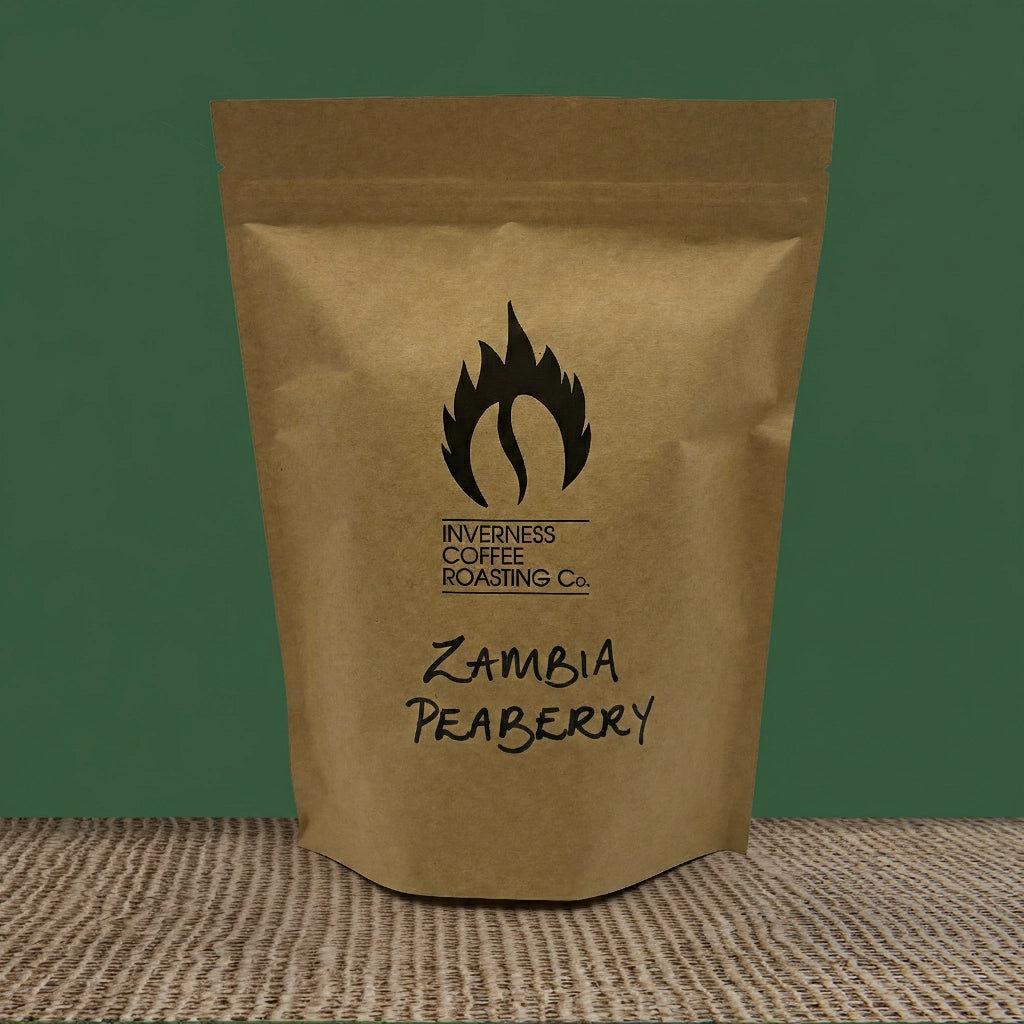 The information about specialty coffee beans, decaffeinated Zambia Peaberry Coffee roasted by Inverness Coffee Roasting Co.. These beans have flavour notes of Nutty, Dark Chocolate, Blackberry. The beans are grown in Zambia.